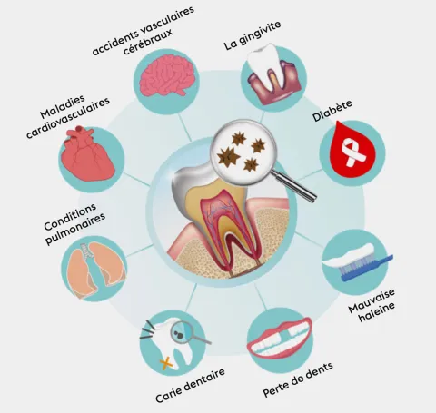 La bouche n'est pas un monde à part : elle peut être la porte d'entrée pour des infections ou des inflammations extra-buccales. En prendre soin, c'est préserver sa santé.